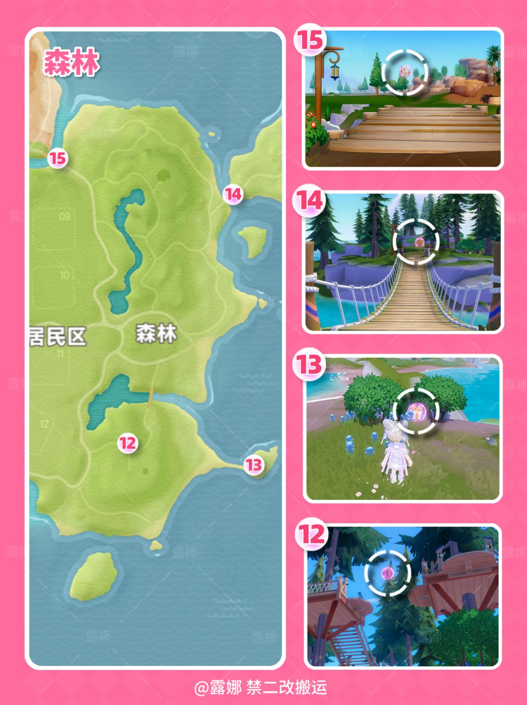 1、每周每人仅可拿1次 2、4月11日早6点刷新位置 3、每人的粉泡内所含物品不同 4、粉色泡泡内物品随机:粉色卫浴家具四件套,满愿星、金币等 ALL Pink bubbles Locations Guide Locations will reset at 6AM 11st April