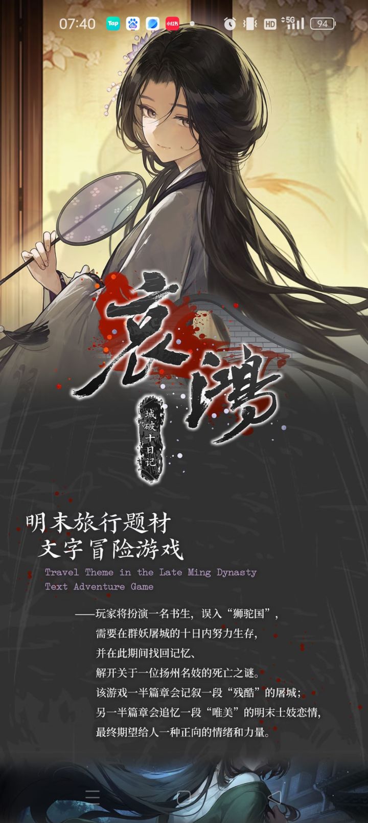 故事以【记篇】十日屠城与【忆篇】十年追忆交织,将明末江南的繁华与崩解,投射于妖国屠城的残酷寓言。史料细节严格对应 《扬州十日记》,在虚妄与真实间拷问乱世人性。#今天游戏圈发生了啥 #单机游戏 #发现好游戏 #浅评一下 #游戏杂谈