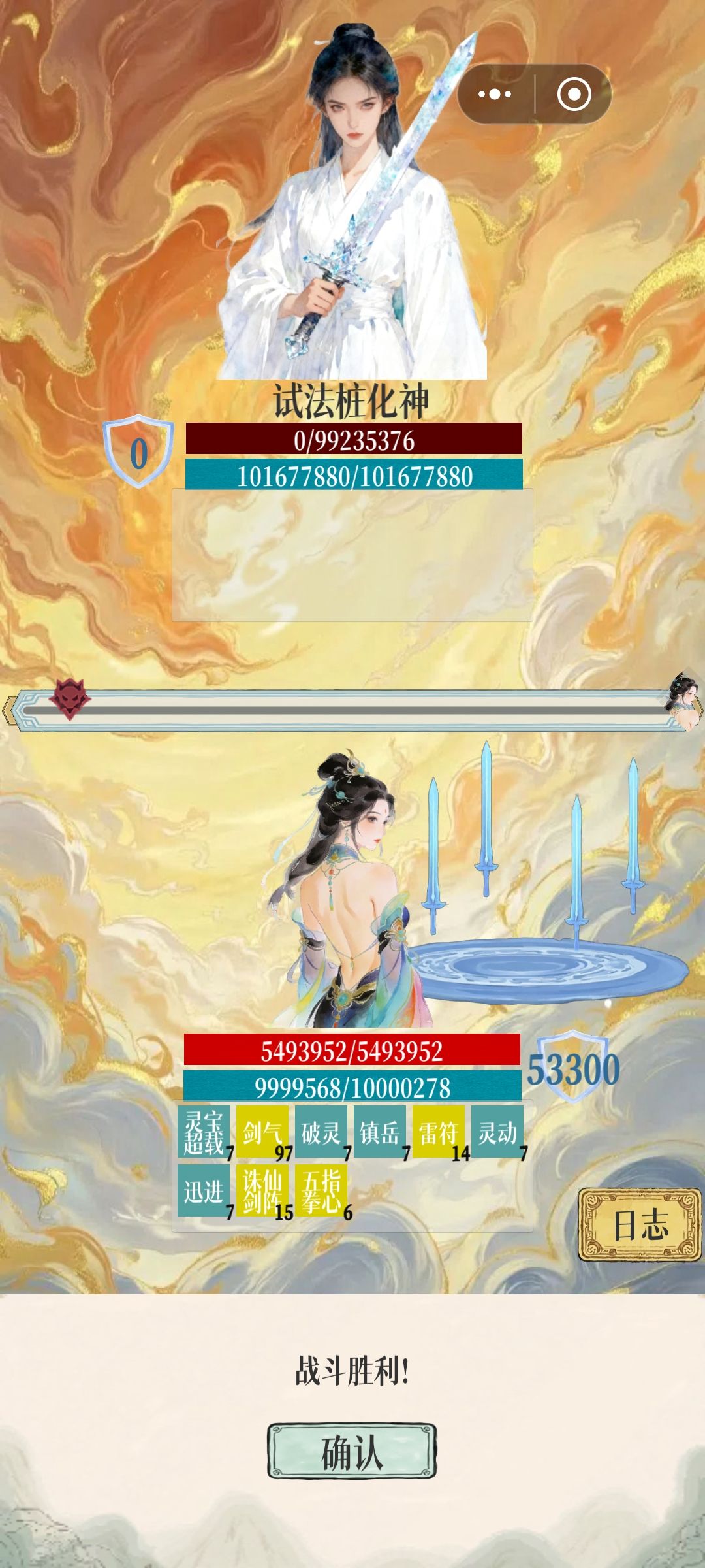 懒得转世了,试了下诛仙剑阵,打化神木桩3秒。具体实战有兴趣的小伙伴可以试试,(成仙以后四维属性太高了,不一定准确)