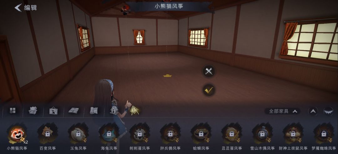 打开梦居【编辑】界面,选择【风筝】页签,即可在梦居中直接布置风筝了!