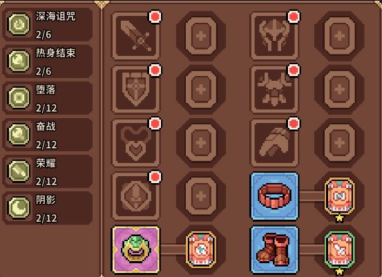 由于开荒期间每个人获得的装备不同,所以这里只给出必须的装备,剩下的空位大家自由搭配即可【毕业装备搭配在后面出草帽之后构筑里面】。