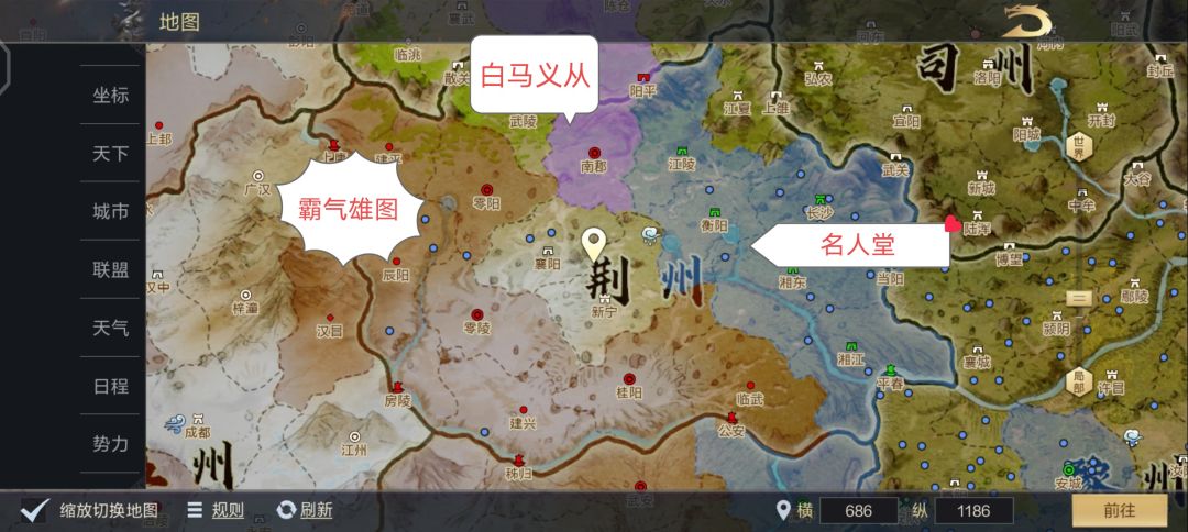 【霸气雄图】因率先入驻荆州,以占城池7座。