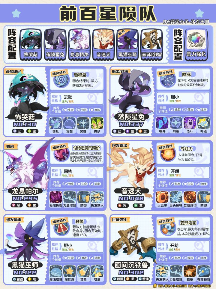 第二套是蒜泥老师的星陨队,前期借住黑猫大人打出人数差,中期通过怖哭菇叠加星陨,后期切出龙息帕尔引爆星陨锁定胜利~