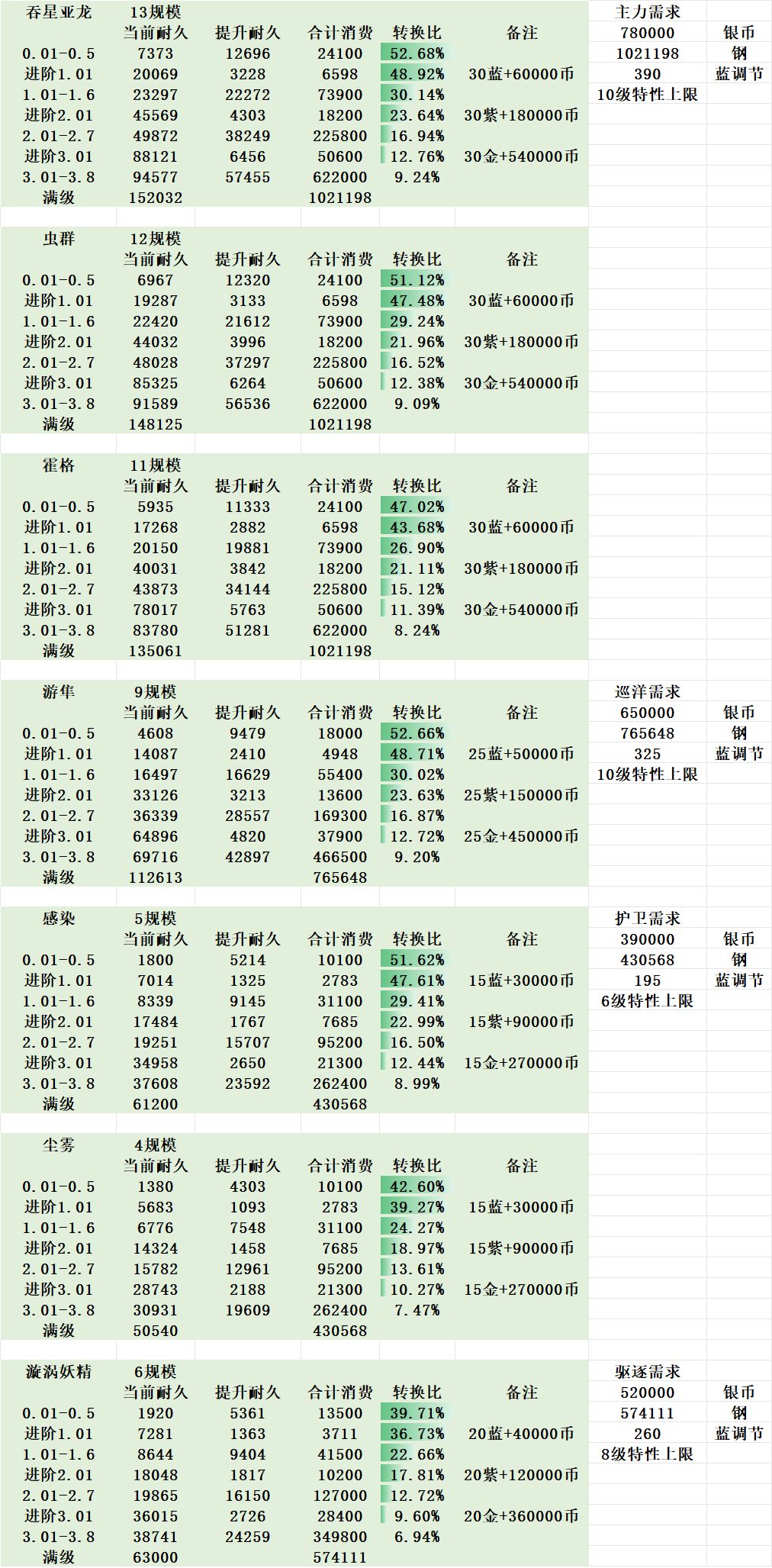 也就是说直接可以雨露均沾,但是最好是根据1.0,2.0,这个顺序行动,满级数据也都在收集,后续会公布在战舰数据库中