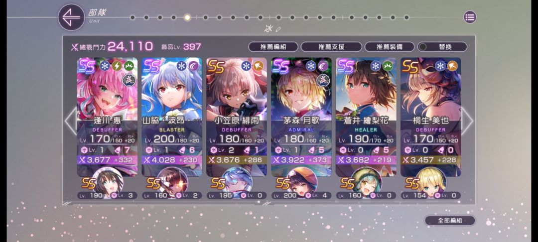 除了最前面两张卡以外,其他都是吃灰了(可以看到从28张之后就没出过货了,第9张才出了个老卡),老的不能再老了,还有一张咖喱原皮就没有放出来了,好消息,冰堆该有的都有了,坏消息就是没有输出