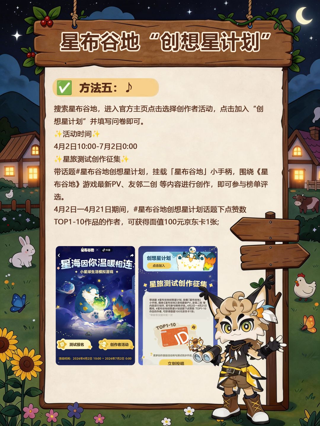 划重点:本次「创想星计划」是星布谷地官方重磅推出的创作者激励,覆盖全品类创作者,无论你是图文党、视频党,还是擅长脑洞创作、攻略分享,都有适配的参与方式!
