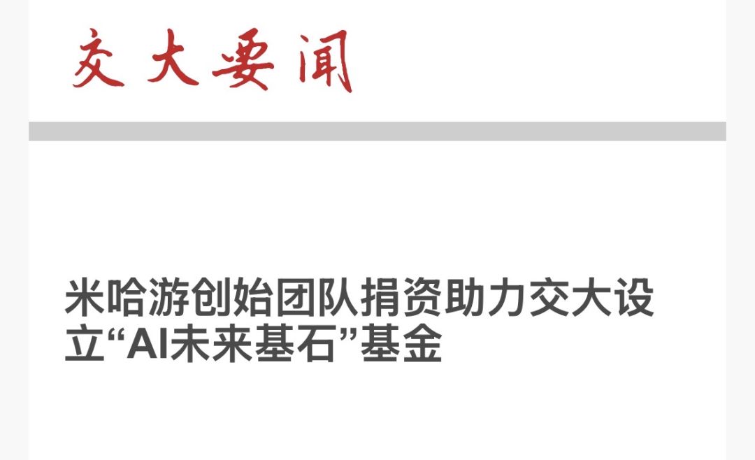 米哈游创始团队向上交大捐资 设立"AI未来基石"基金 助力前沿AI