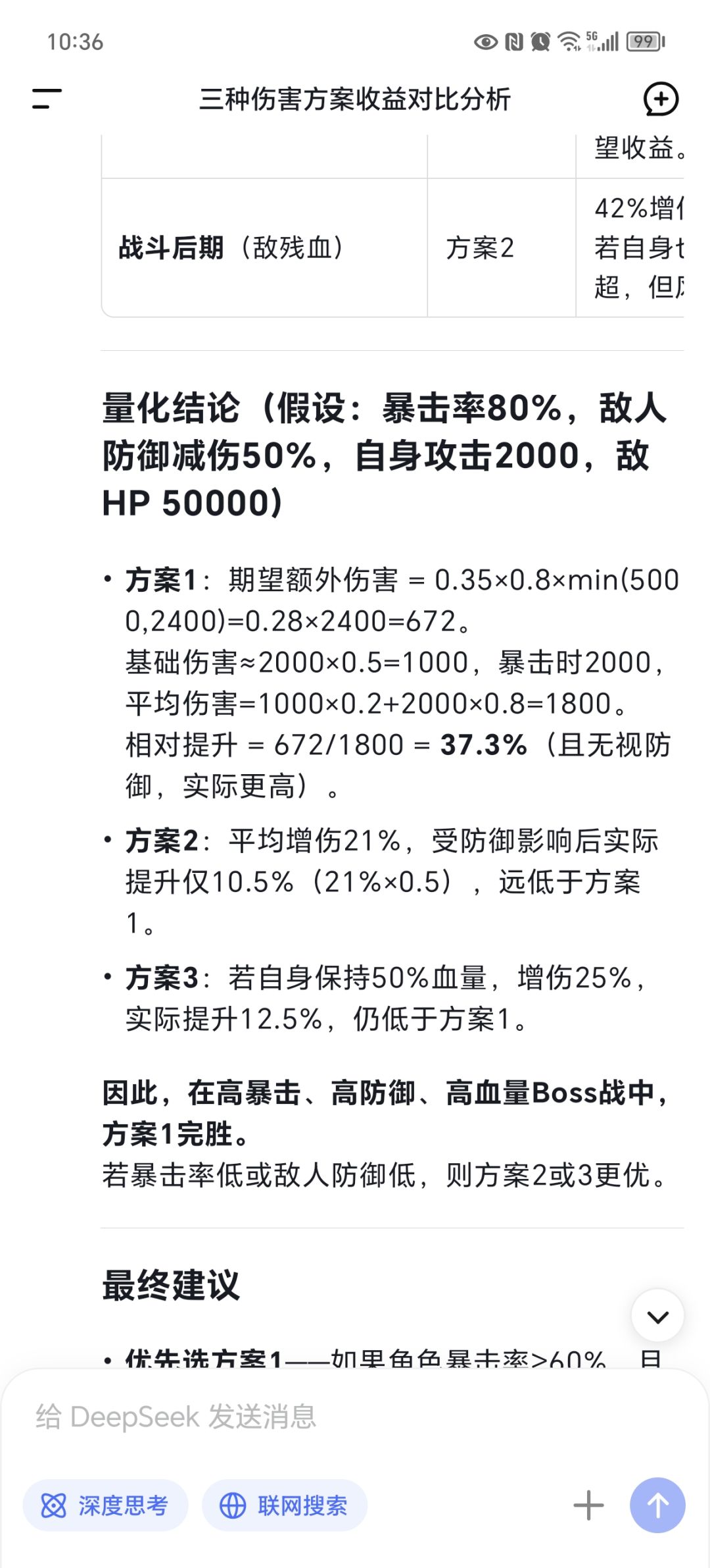 直接说结论:暴击40以上万箭齐发的收益已经高过另外两个锦囊了,更高的话差距会更大。更何况追加的还是真伤,懂得都懂。无脑选万箭就行了。最后一张是ai自设的场景,感兴趣的同学可以再优化一下场景,欢迎交流沟通。