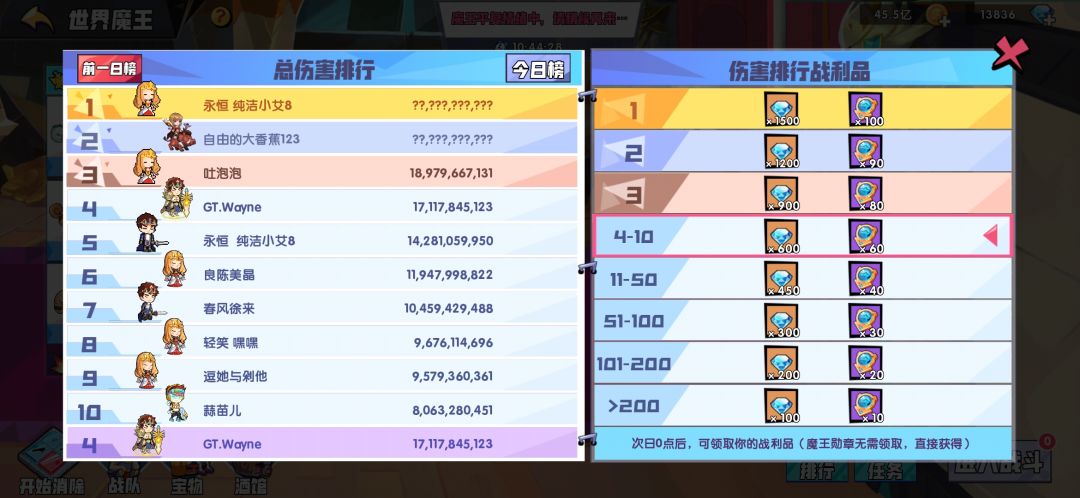 3,想再提点小建议,由于正常通关后,后期就主要是拼英雄等级,怪物等级,装备跟宝物品质,豪氪金很多的情况下除外。因此个人觉得目前的合榜机制还不够合理,是否可以再优化一点,我不是打不过才提出来的(我是真打不过
