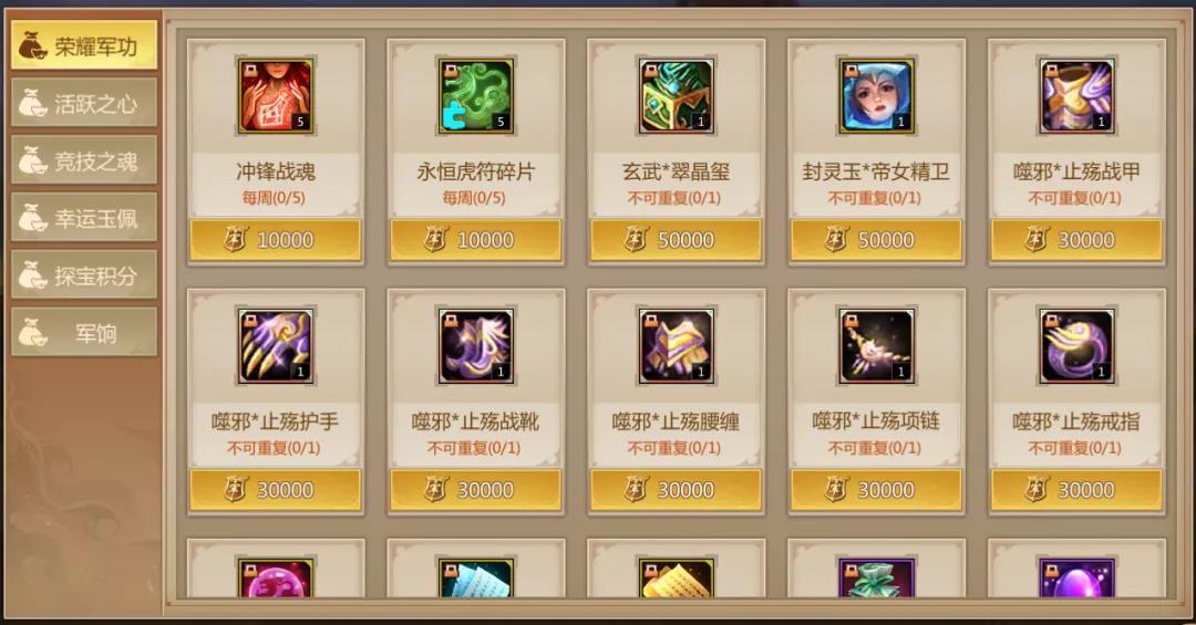 新增荣耀军功商店,原军饷商店内可兑换内容都可以在荣耀军功商店兑换。