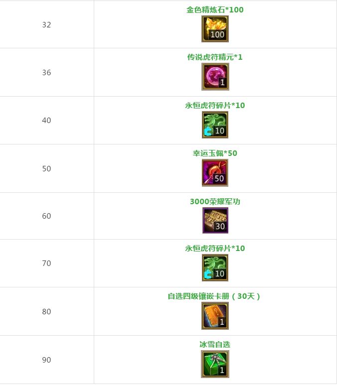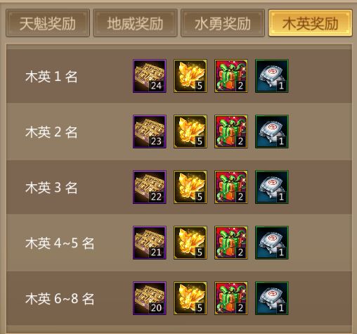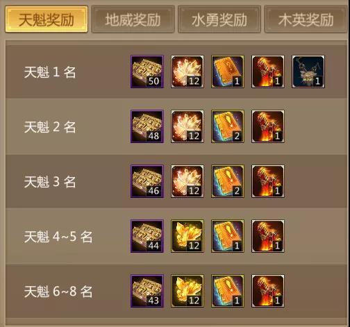 第9~32名都会获得相应的荣耀军功,金色精炼石,镶嵌卡自选礼包和兵粮卡。