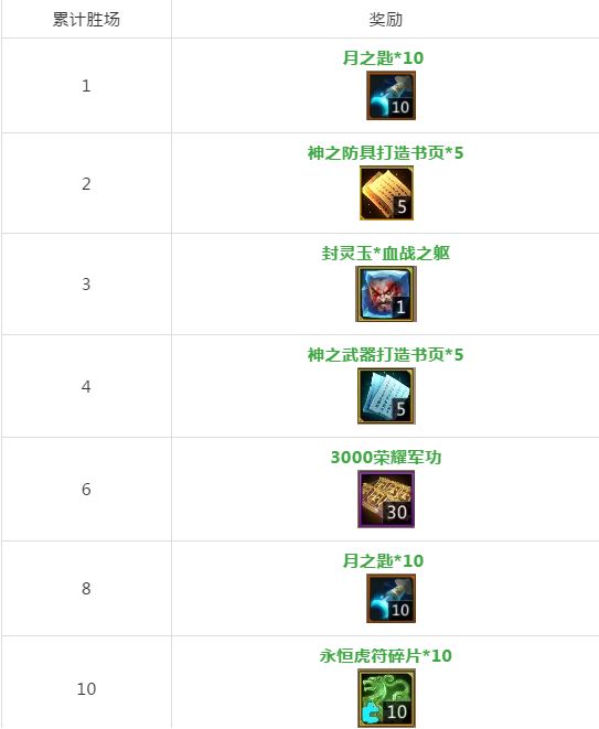 在累计获胜10、16、28、40、70场时都会获得永恒虎符碎片*10!这可是下个版本中更加强力的虎符。