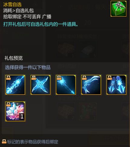 累计获胜90场后,即可获得冰雪自选礼包。打开后可随意选取一件冰雪武器或万年寒冰。