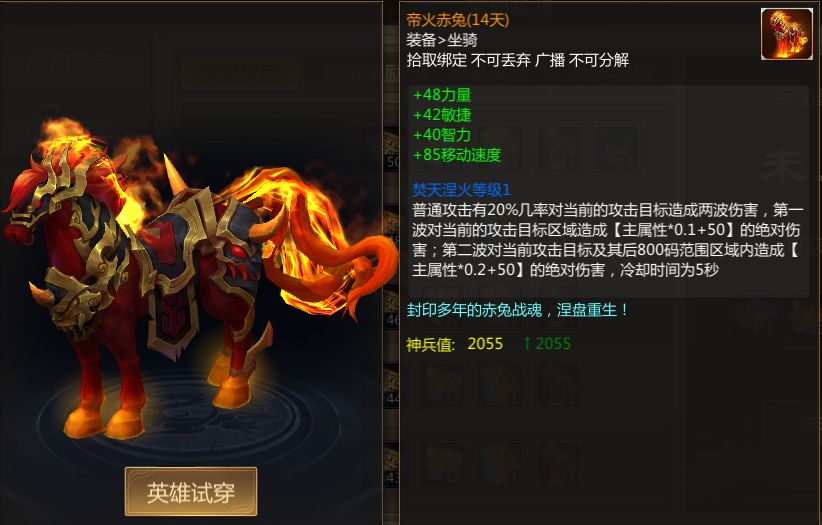 天魁组的军团都会获得帝火赤兔(14天),帅帅气气。