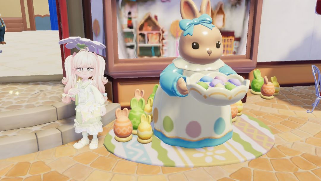 布兰克彩蛋摆件位置:布兰克常驻位置后面的太阳伞花摊上