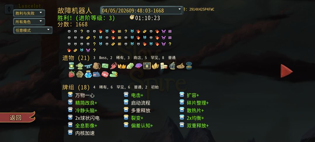 昨晚嗑药sl到绝望才8点血强过心脏,今天就给我这么爽的对局,遗物好给的牌也好,一层无伤过六火,二层三层精简牌组,基本上一路横推没怎么掉过血,低进阶的鸡煲还是太强了