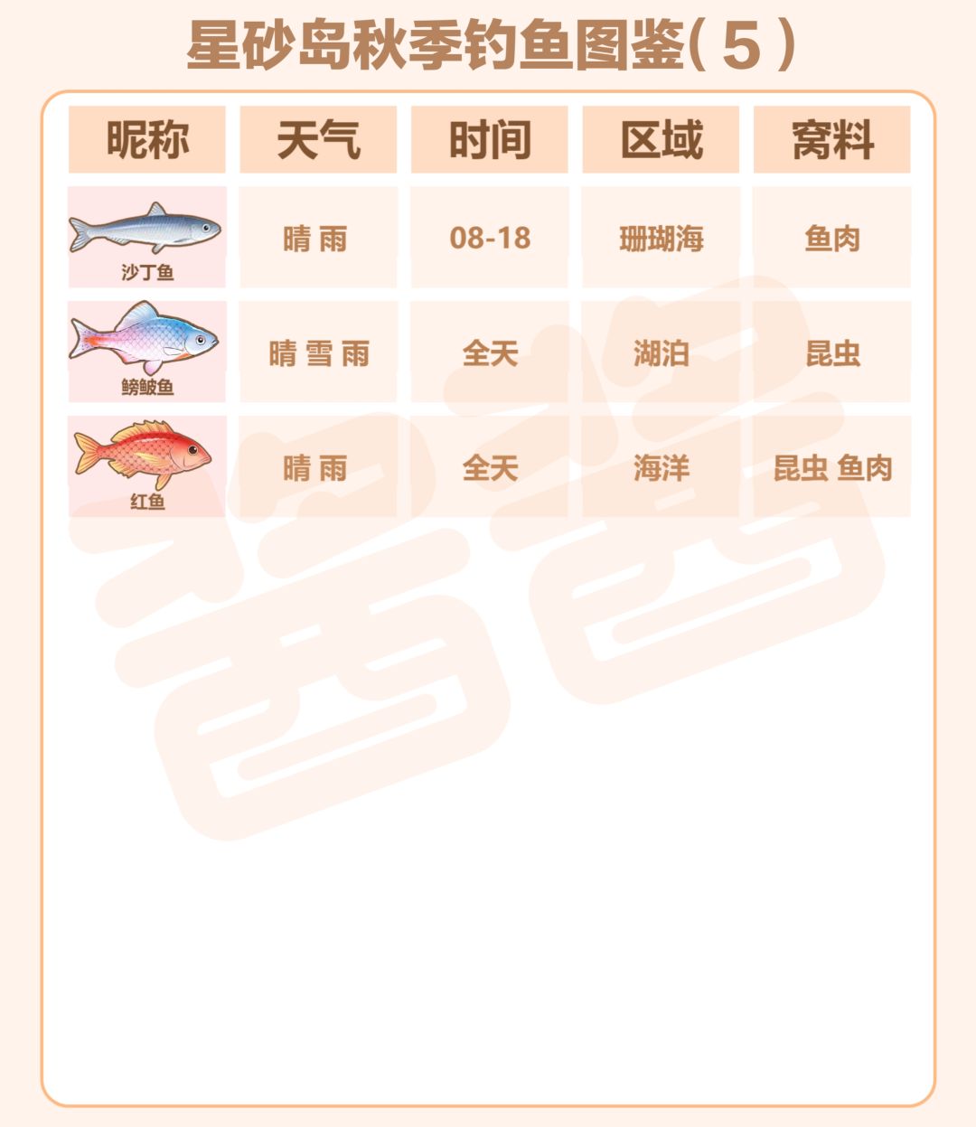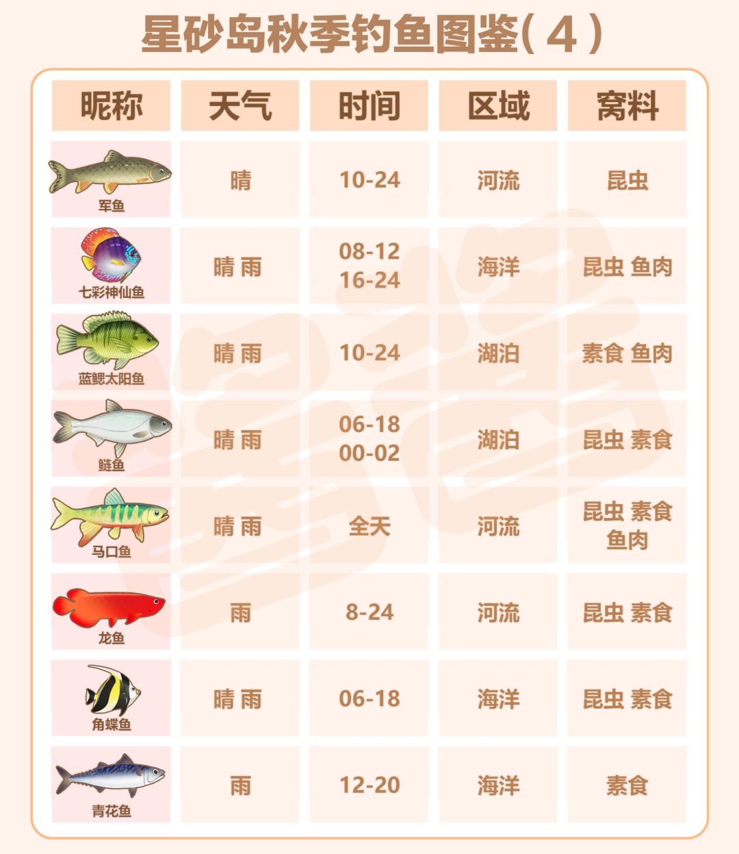 谁懂啊家人们!为了钓齐星砂岛秋季所有鱼,我整理了这份超全图鉴😭