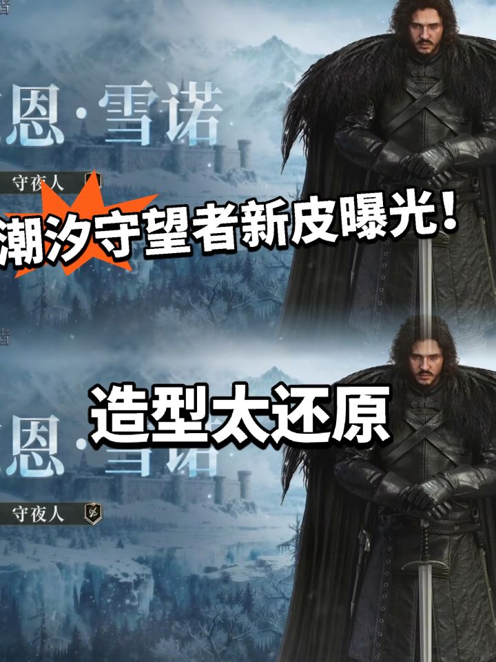 新皮肤「守夜人」直接换了风格,把毛领全换成了黑色的羽毛装饰,简洁又冷峻,纯黑长披风,搭配冰雪山脉背景,完全贴合守夜人军团守长城的设定,少了原皮的厚重感,多了股肃杀劲儿。