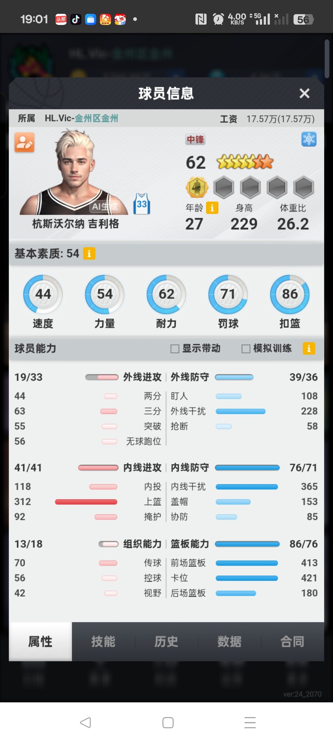 不出意外的话八联这样的内线强度还行,下赛季再买一个13的内攻训练一练。