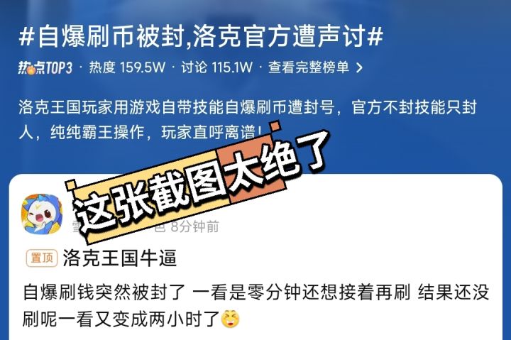 正常刷金封号?洛克陷争议