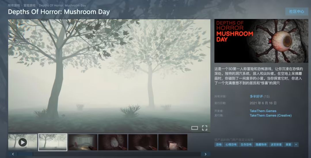🎮 Steam喜加一,原价22元《Depths Of Horror: Mushroom Day》白送,入库可永久保留