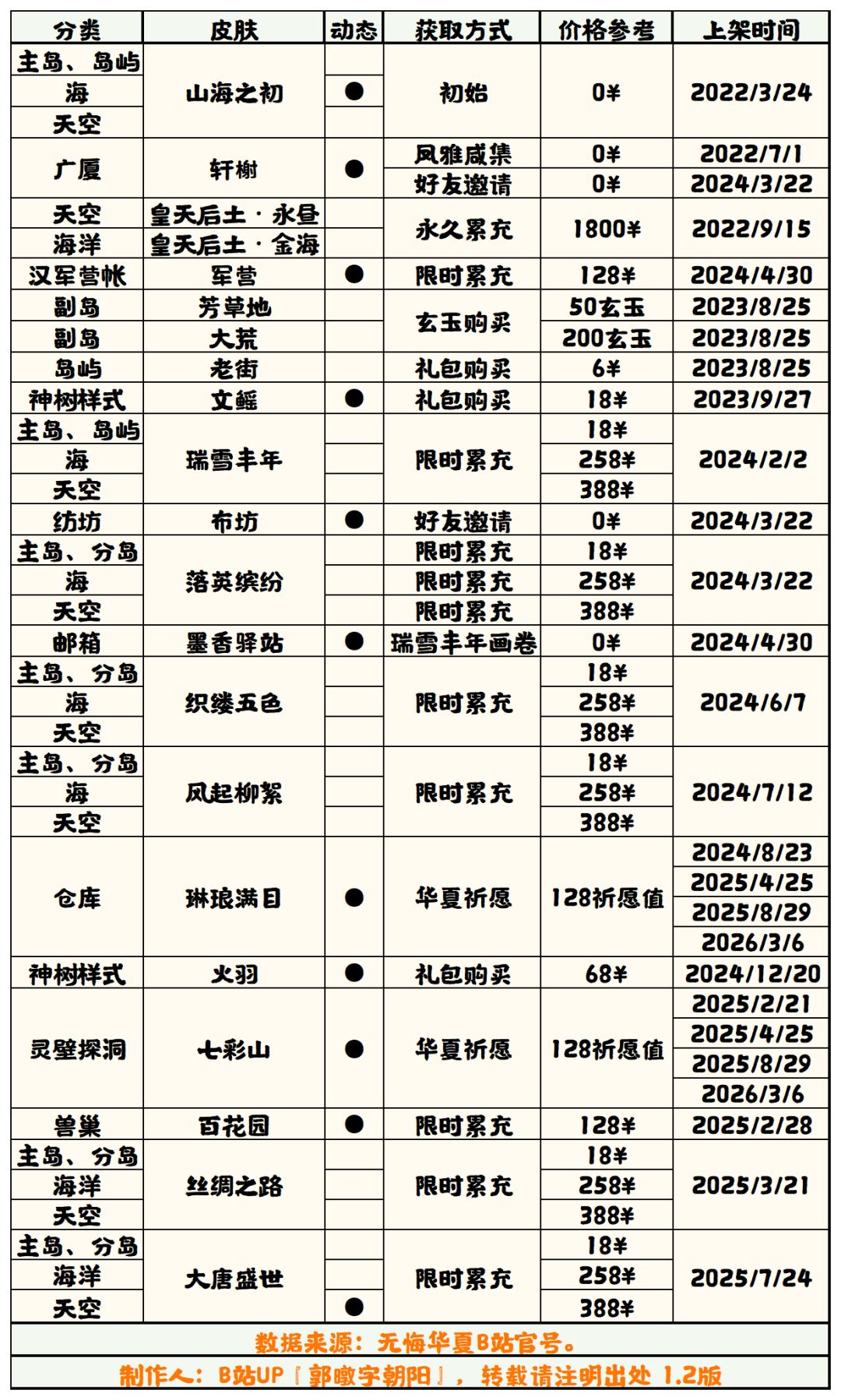 【无悔华夏】山海界皮肤获取方式表 1.2
