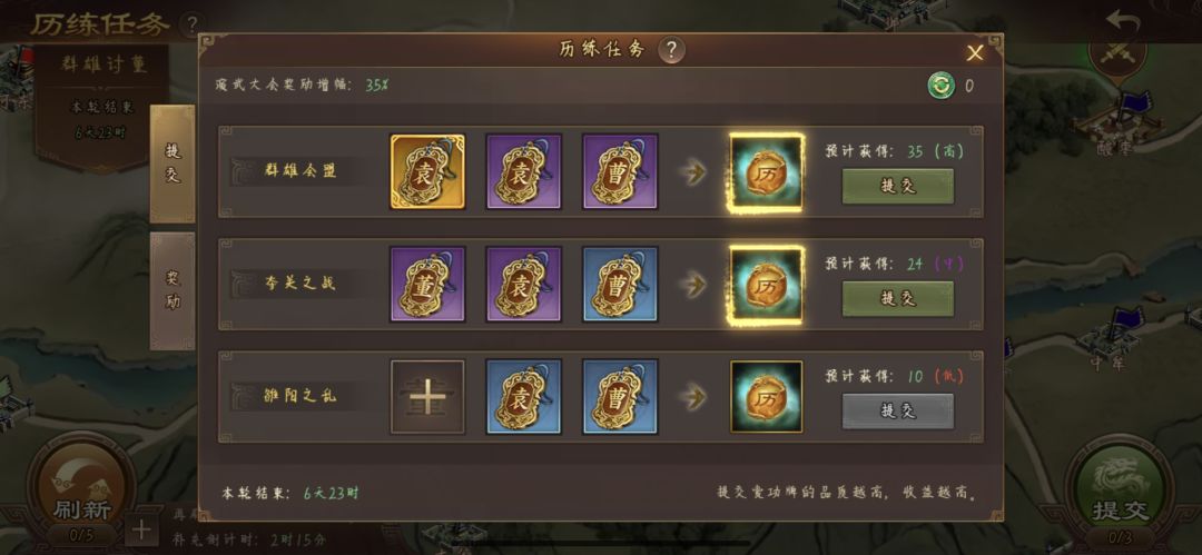 演武没事了,咱们浅谈一下历练,对于新入坑的萌新来说,这周和下周只能保持20%增幅,需要4金5紫令牌,今天上号打了打