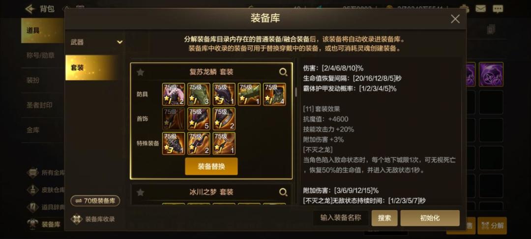 复苏套,可以多一次保命,土龙等高难度副本吃香,手法比较差一些的话可以选择这个也会很不错,在应对目前土龙副本是很适合的。如果追求伤害高一些,可以选择逝魔跟暗影套,氪佬直接可以选择万世套,强度最高毋庸置疑!