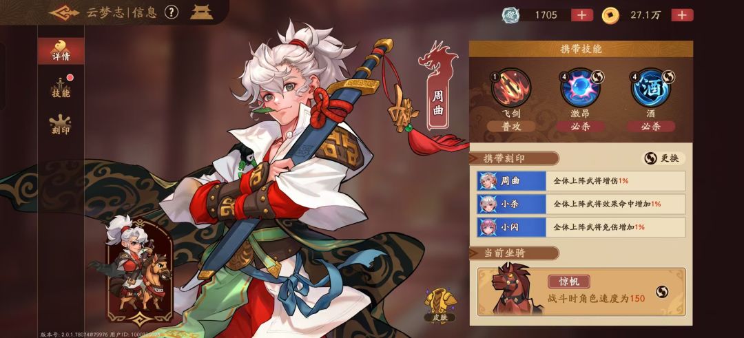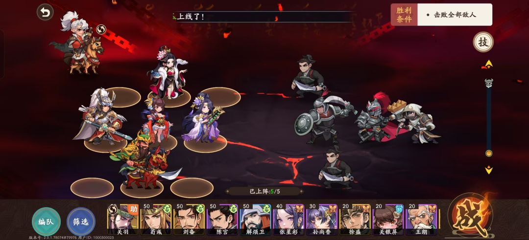1.主角:主角请务必将游历打到至少获得130速度的坐骑的程度,主角动的比大佬角色还慢,大佬的关羽就会没火用。技能带激昂或者酒都可以