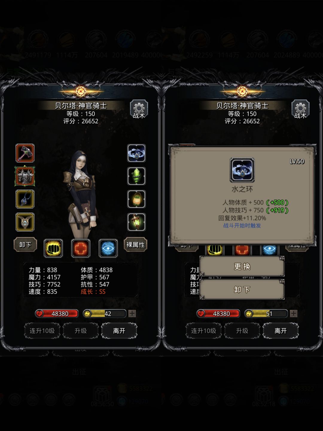 可以考虑参考我得环配置:盾锤神官技巧还是不够的话,可以用800环(正常是不超力速比的)