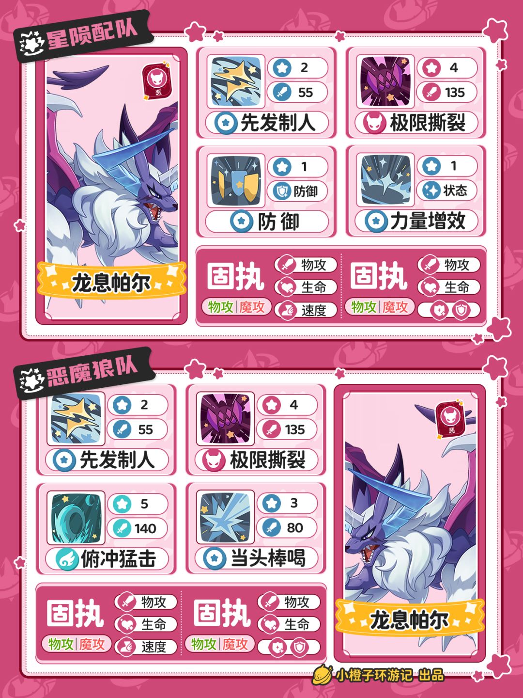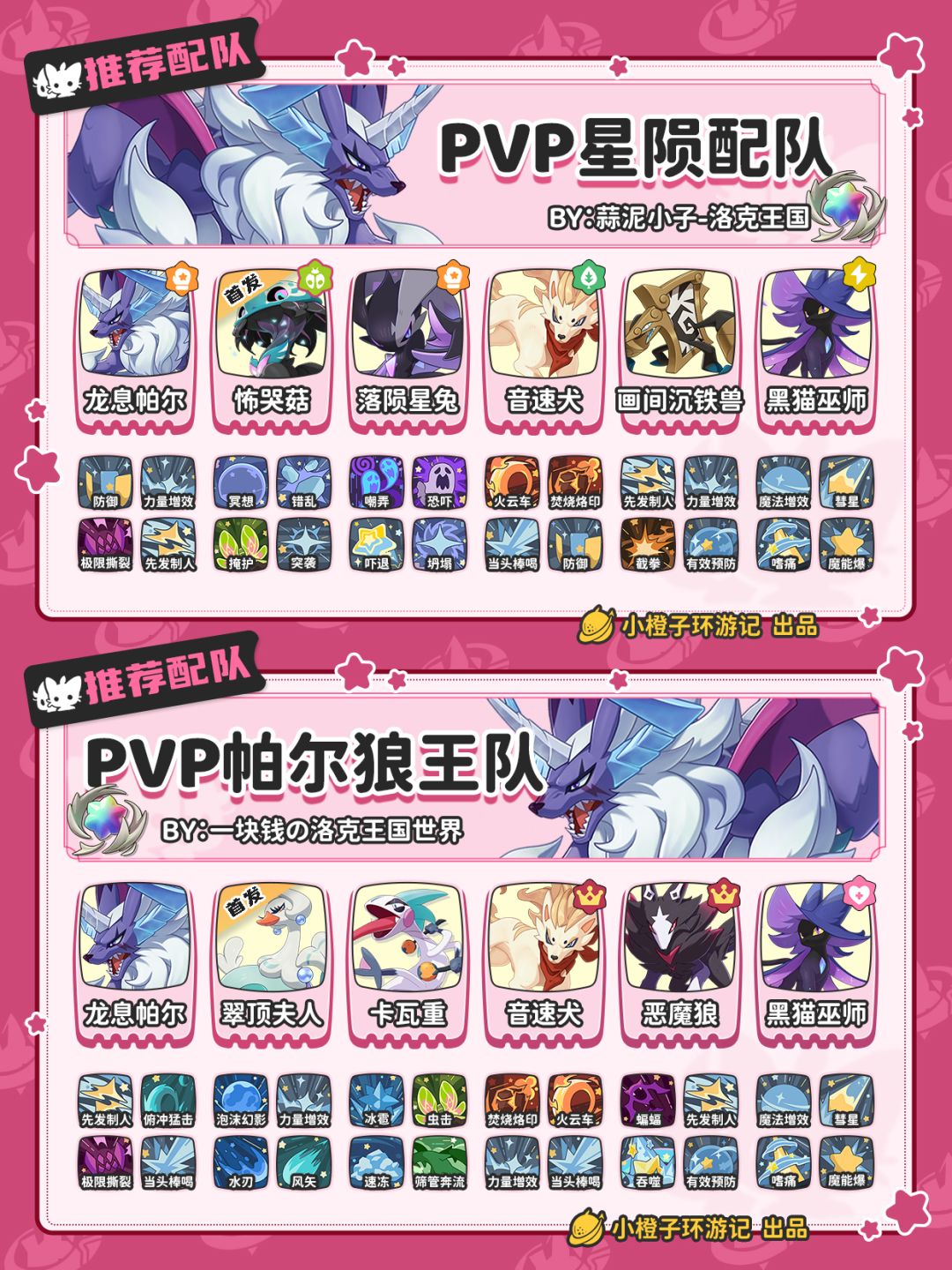 ①现在帕尔阵容一般用于两个配队,一个是加入恶魔狼,一个是加入星陨队,两个队伍都是借用精灵特性击败敌人额外获得魔力点数。