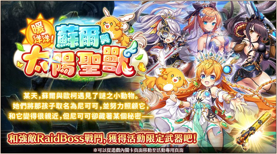 即日起,举办Raid活动「暖洋洋!苏尔与太阳圣兽」!