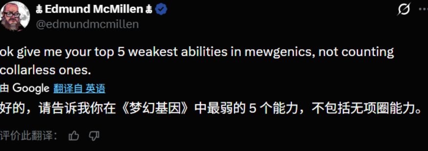 《喵喵的结合》制作人E胖近日在X平台发文,向玩家征集游戏中最弱的5个非无项圈技能,为即将到来的平衡补丁收集数据。