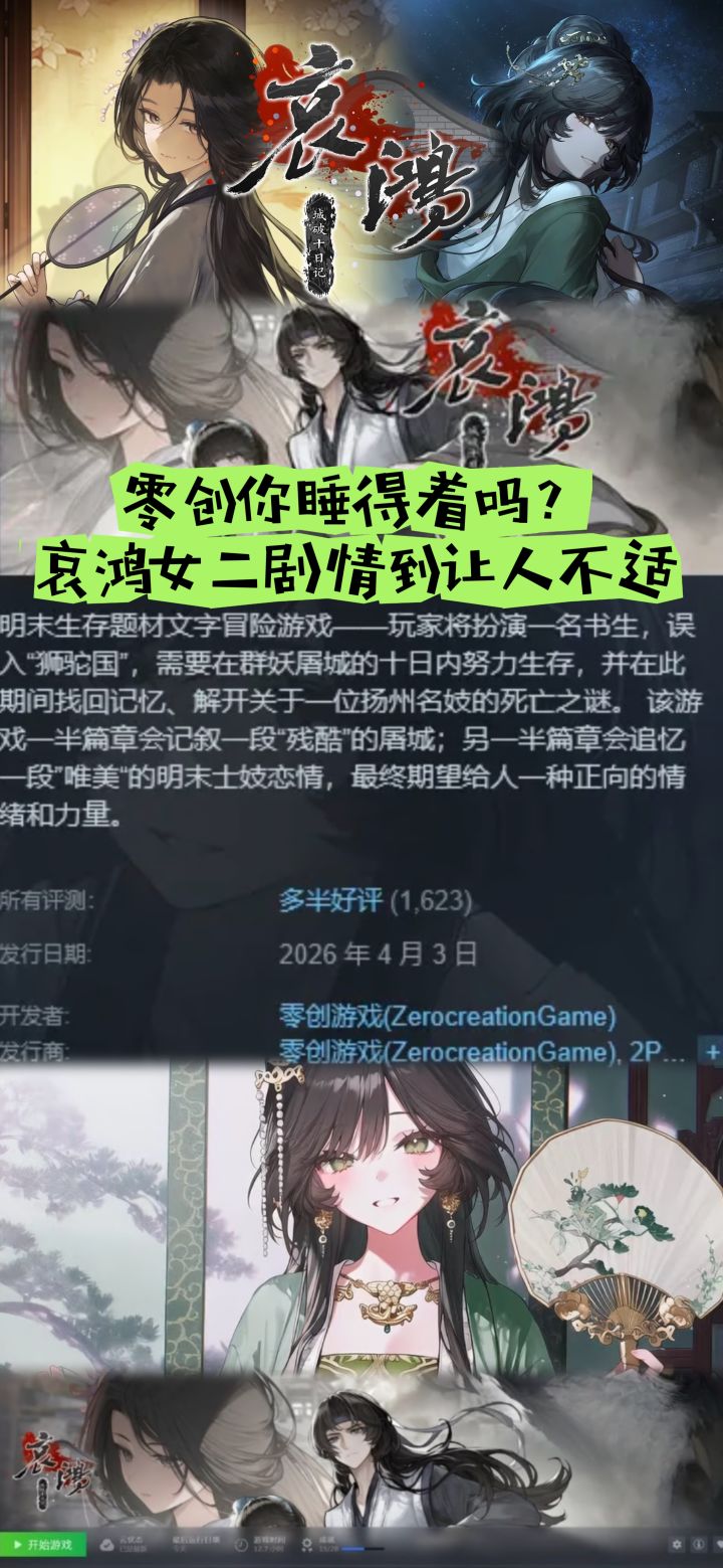 作为《饿殍:明末千里行》衍生作,零创游戏推出的明末生存文字冒险游戏《哀鸿:城破十日记》上线后热度走高,首日销量近五万份,却因女二号林翩翩陷入口碑风波。