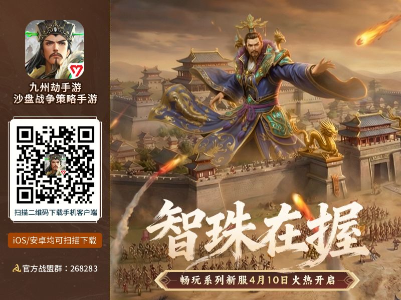 双沙盘策略手游《九州劫》4月10日(周五)畅玩系列新服火热来袭,感谢各位玩家对游戏的支持。本次开放服务器为全平台新服,支持安卓、iOS、电脑版多平台互通。欢迎各位君主大人进驻!