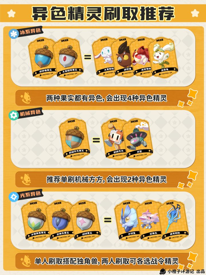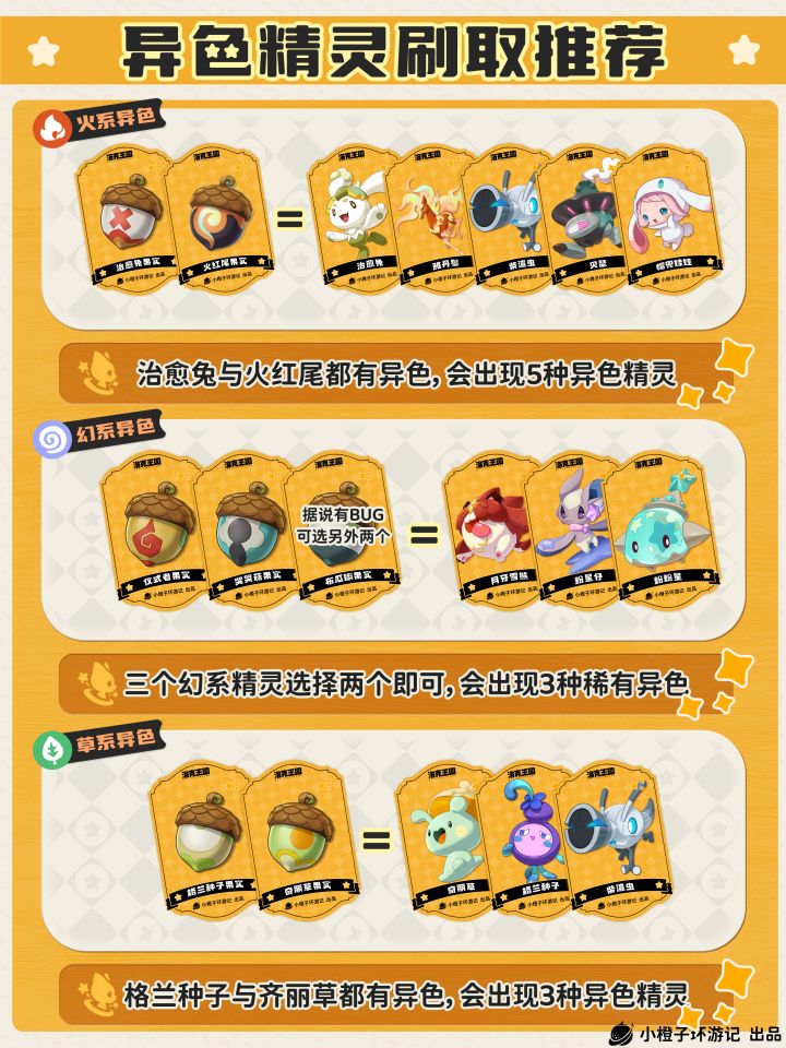 这一期是刷取异色精灵果实搭配的推荐。最近橙子为了解刷取异色的机制~