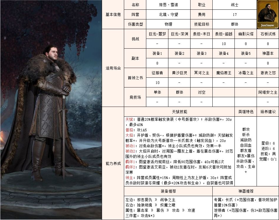 #潮汐守望者联动攻略#潮汐守望者--英雄卡片之琼恩雪诺
