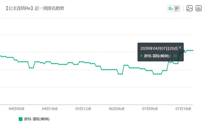 第三方平台数据显示,4月7日游戏更新后,在游戏冒险畅销榜排名第三十八名