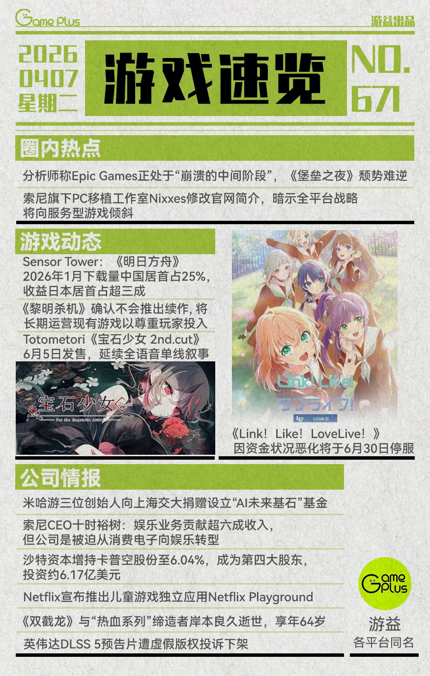 游戏行业值得关注的信息-0407