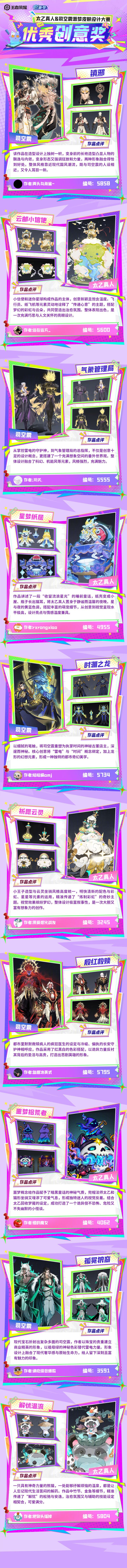 由腾讯旗下天美工作室群开发的国民级MOBA手游《王者荣耀》4月6日早时分发布公告,司空震与太乙真人源梦皮肤设计大赛优秀创意奖名单正式揭晓,具体见图2