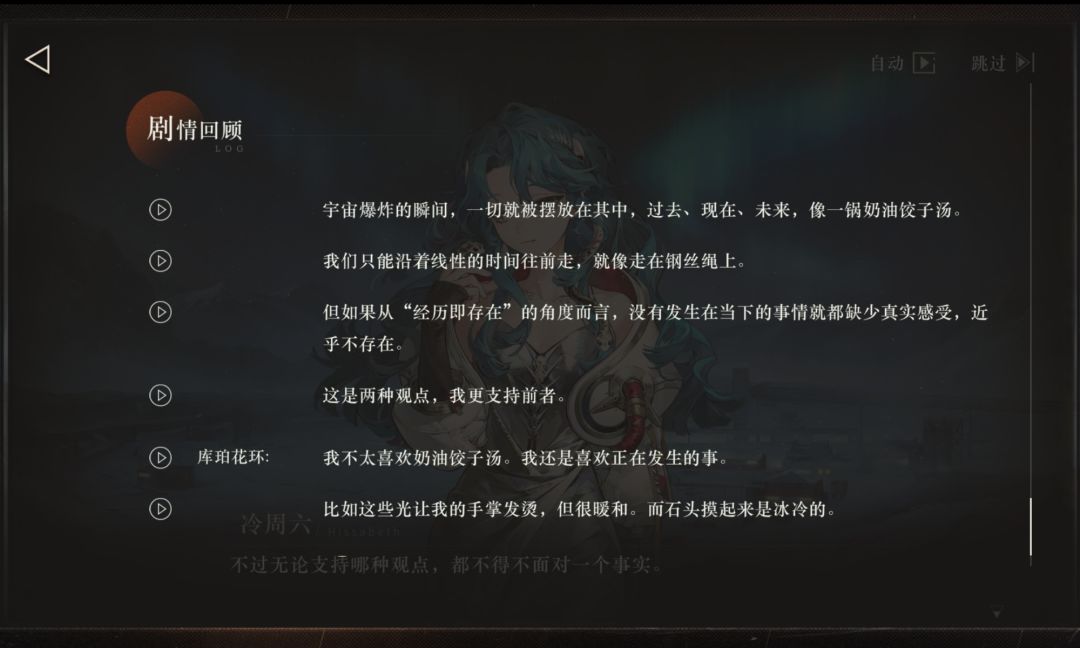 回到我想表达的,什么感觉真实,他们聚在一块儿,其实一是在冷周六和库珀花环偶遇的那个餐馆里,二是在有极光的野外。他们的话题是轻松的沉重,以轻松调侃的口吻去解构那个未知的后果的沉重。无论成功与否,他们所处的现世,暴雨一旦落下,原本他们熟悉的故土,家人们都只会存在于他们的记忆中了。还有让我印象深刻的一点,在冷周六和指针争执的时候,指针要退伙儿,冷周六随口说的那句 感觉像是没有深思熟虑“没有基础研究,就像吃泡面没有蔬菜包那样。”这样反倒很真实,因为我们从剧情发展得知,冷周六其实是一个很爱吃的人,读到这儿我其实也是会心一笑。