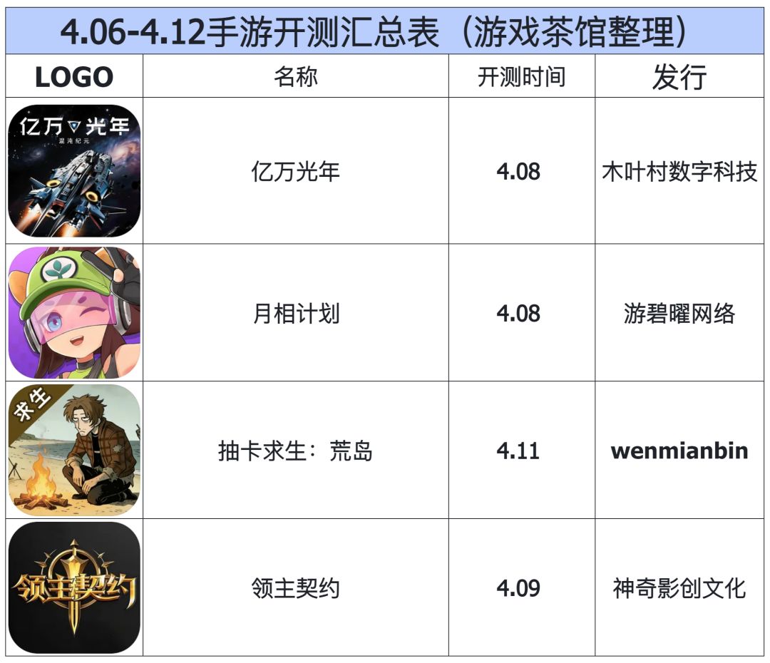 游戏茶馆整理了本周(4.06-4.12)即将上线的新游戏
