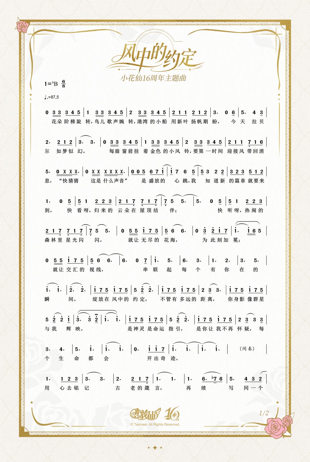 小花仙16周年主题曲《风中的约定》乐谱,今日公开~