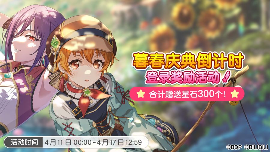 为庆祝暮春庆典活动的开启,4月11日,游戏内将开展「暮春庆典倒计时登录奖励活动」,活动期间内每日登录游戏都可领取登录奖励!