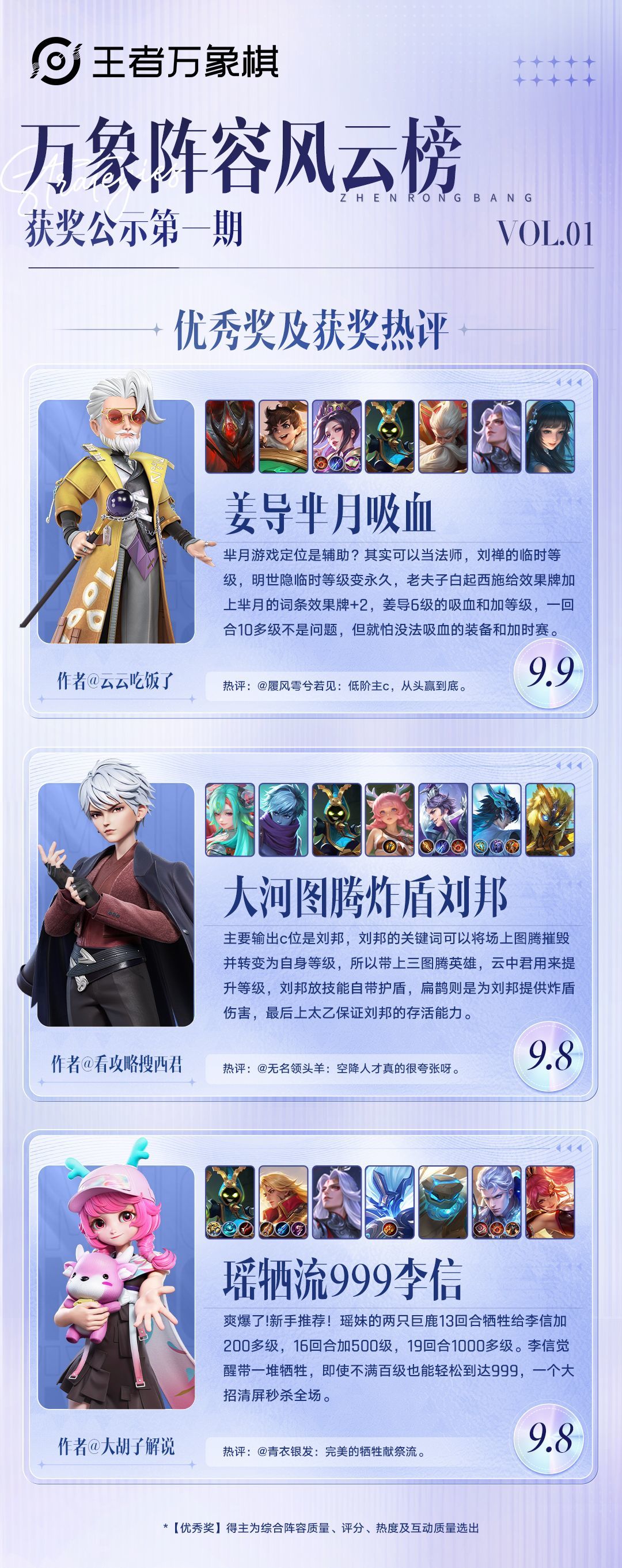 《王者万象棋》万象阵容风云榜第一期已结束,获奖名单正式出炉!🎉