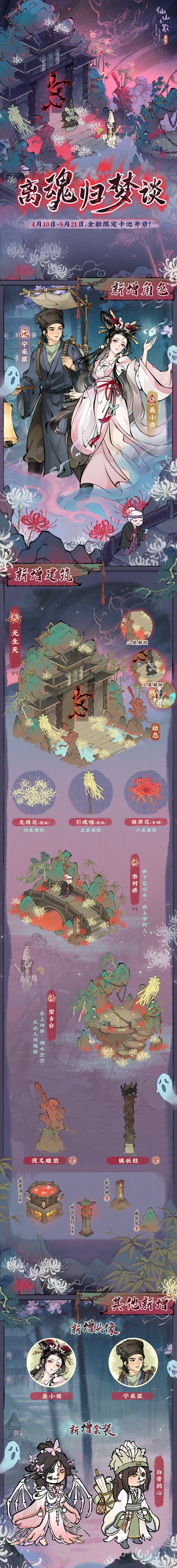 🌸幽夜逢倩影,归梦谈冥都。全新版本将于4月10日开启,以下是版本内容介绍,欢迎小农查看~