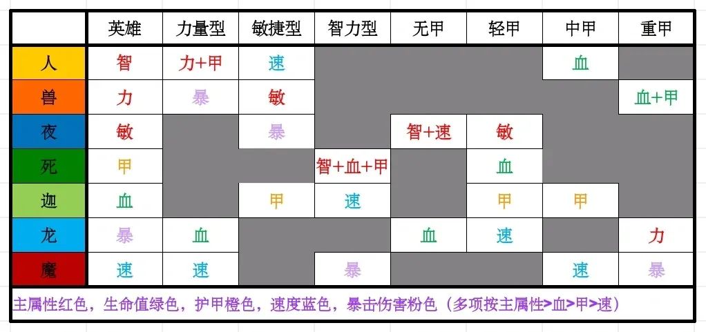 每个单位存在两种“目标”,即“型”和“甲”,而英雄只有“型”且必须和只能出站1个英雄,那么局内培养英雄要比培养其他部队更困难,比如全部上阵智力型部队获得一个可用的神器相当于5倍提升,又比如全部上阵力量型重甲单位既可以吃力量型神器又可以吃重甲神器