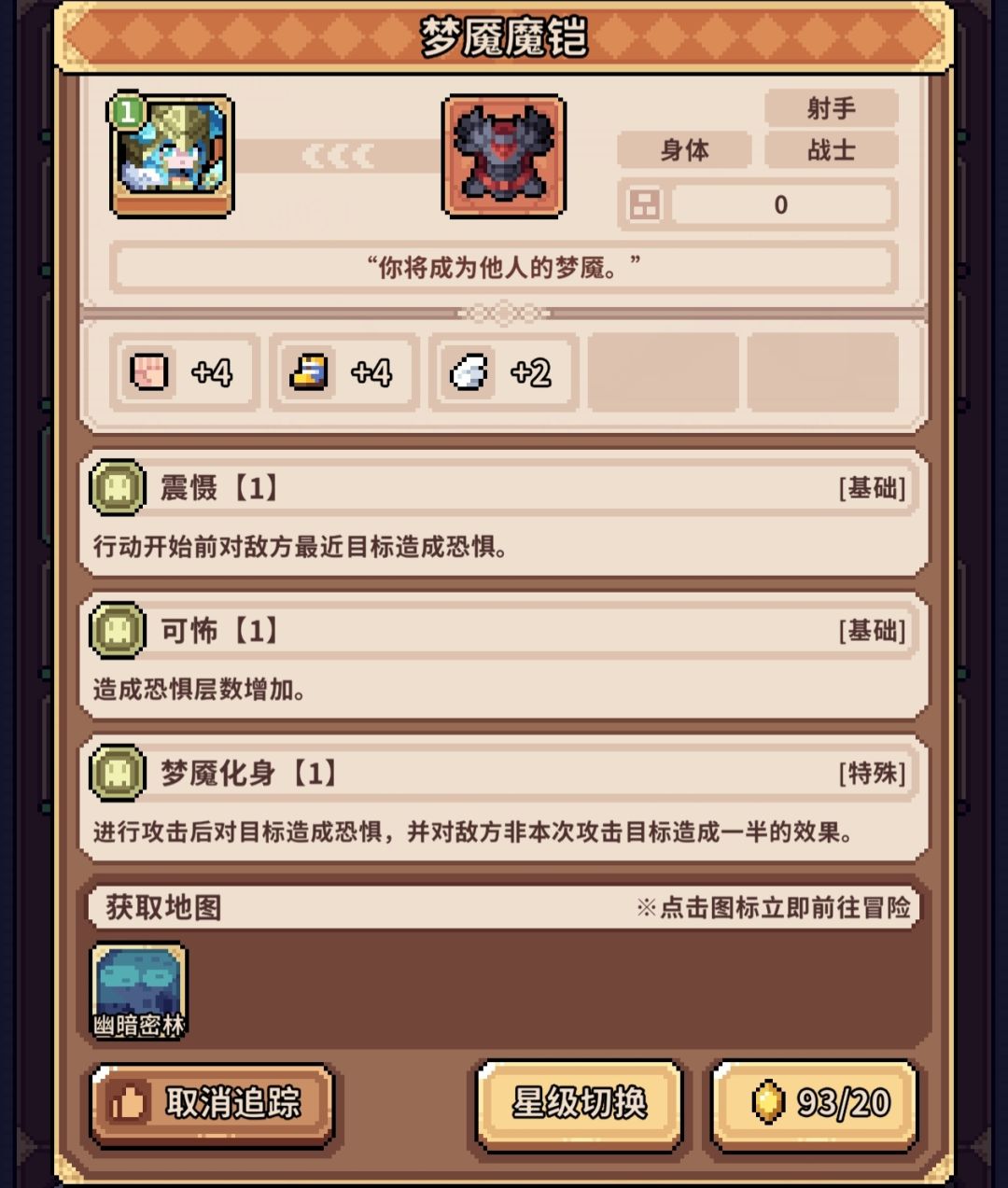 魔族角色,种族天赋自带造成伤害后破韧(不破防不生效),特性相当强力,有条件可以升5星,2星就能用,可用其他携带梦魇套的战士代替。