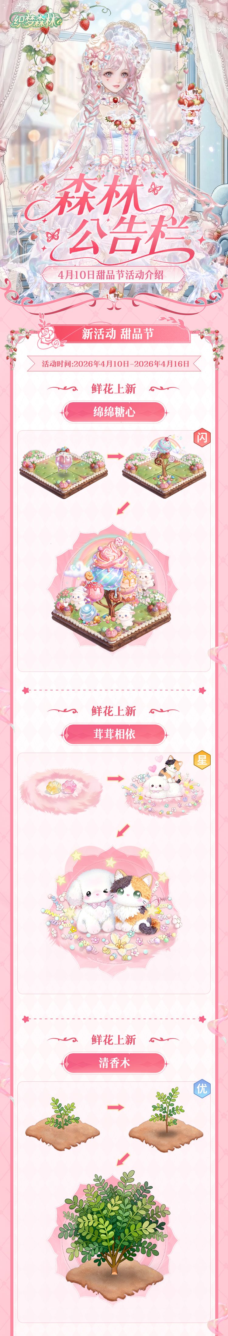 【森林公告栏】「甜品节」活动即将上线,新品鲜花、时装上新!
