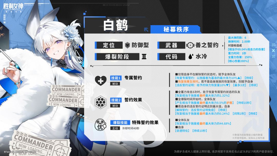 ✦ 爆裂技能:白鹤是能恢复队友体力并赋予增益效果的防御型妮姬。